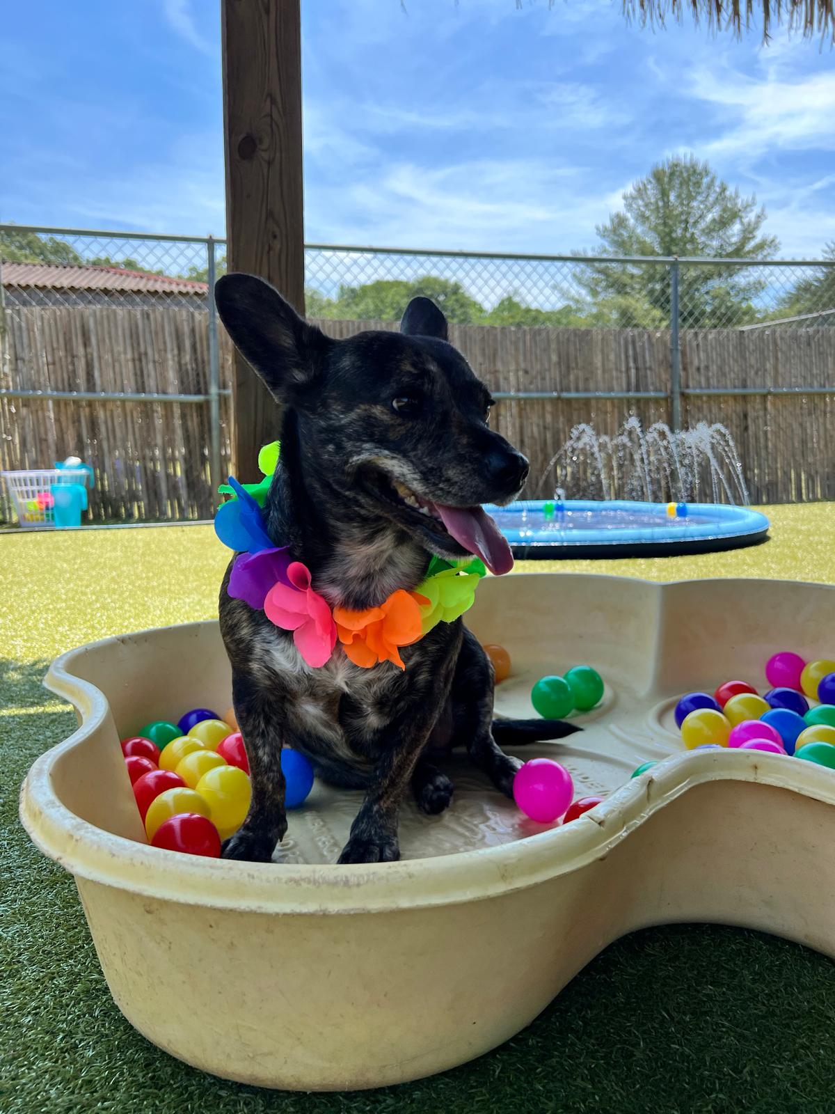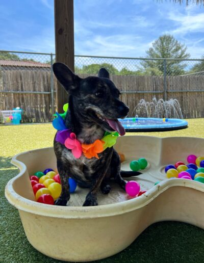 Dog Smiling in Pool at Dog Daycare at Happy Tails Pet Resort